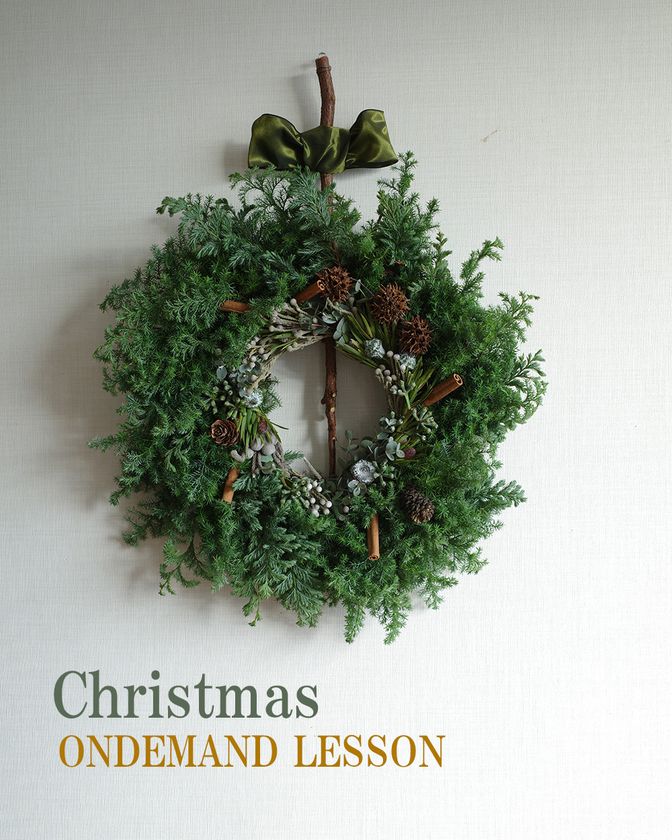 オンラインショップで制作キットをご購入いただいた方に、クリスマスリースの作り方を説明したオンデマンド動画を配信します。
