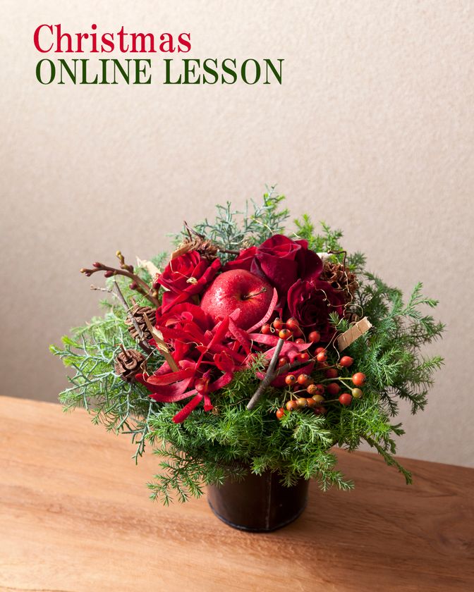 初心者の方には、クリスマスアレンジメントをZoomオンラインで受講ができるレッスンをご用意しました!