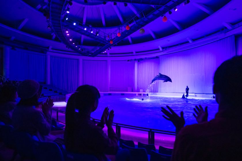 光と音の演出の中でイルカ達が躍動する、新感覚のナイトエンターテインメントです。