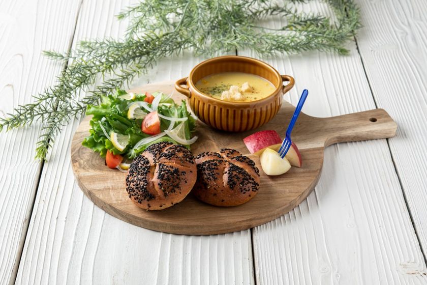 「低糖質 乳酸菌入ブランパン(プレーン・ごま・くるみ)」は、一般的なロールパン(日本食品標準成分表2015年版(七訂)参照)と比べて、(1)食物繊維量約6倍、(2)糖質約91%減、(3)たんぱく質量約2倍といった特徴を持つモチモチふわふわ食感のパンです。水溶性食物繊維イヌリン、シールド乳酸菌(R)、高野豆腐粉を配合することで実現しました。特に、イヌリンは腸内細菌のエサになり体内での発酵を促します。また、それぞれ個包装で持ち運びにも便利で、外出時にも健康的な食事をサポートします。