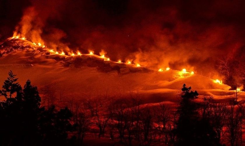 雪山の尾根に並ぶ108の藁火はとても幻想的な雰囲気を醸し出します。