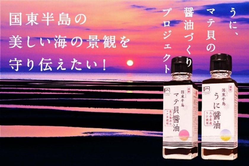 国東半島の日本遺産:鬼が仏になった里「くにさき」の振興を図る六郷満山日本遺産推進協議会(所在地:大分県豊後高田市・国東市、代表 豊後高田市長 佐々木 敏夫)は、国東半島の里海を守ることにもつながる美味しい醤油づくりのプロジェクトを進めてきました。この度、完成しました「うに醤油」「マテ貝醤油」の先行予約販売をクラウドファンディングサイト「CAMPFIRE」にて2022年5月17日(火)に開始いたしました。プロジェクト期間は2022年6月30日(木)までです。