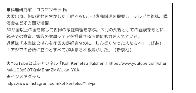 コウケンテツ氏による食材・レシピ解説や、林修先生が「国消国産」の実践ポイントなどをわかりすくお伝えします。