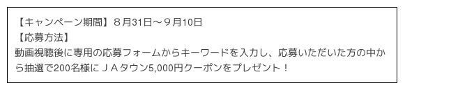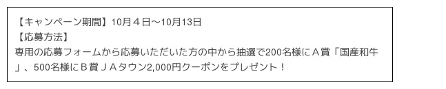 視聴者限定として、国産農畜産物の購入に使えるクーポン券が当たるプレゼントキャンペーンを実施します。