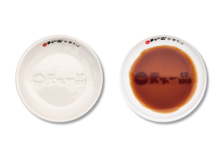 →醤油や餃子のタレを入れると、ロゴが浮かび上がります。