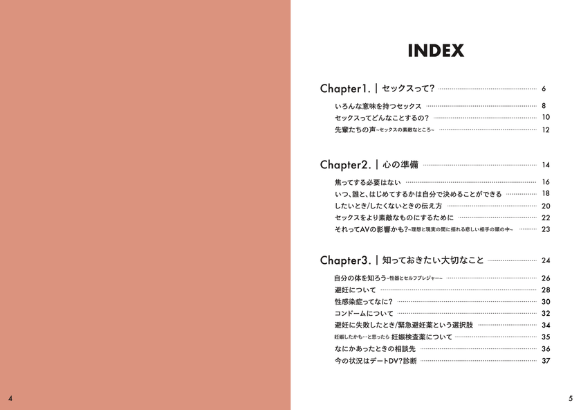 パートナーとのコミュニケーションの取り方、避妊の方法、もしもの時の相談先まで、実際に行動する場面で必要な知識が満載。誌面デザインにもこだわり、読みやすくわかりやすいのもポイント。内容はすべて助産師と医師がダブルで監修。頼れる参考書として、困ったときにはいつでも読みかえして。