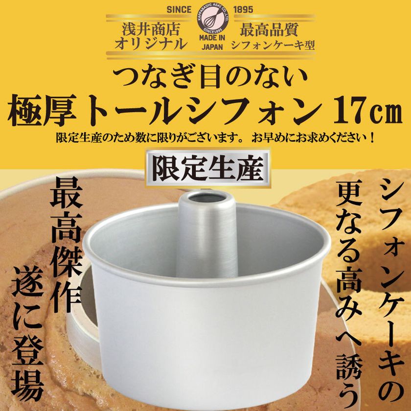 宮内庁御用達製菓・製パン器具専門店の「浅井商店」がつなぎ目のない極厚アルミトールシフォンケーキ型17cmを新発売!