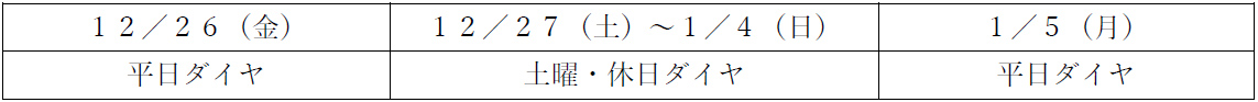 なお、大晦日の深夜から元旦にかけての延長運転及び終夜運転は実施いたしません。