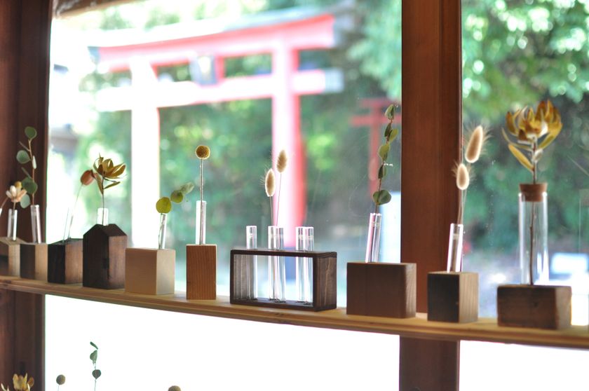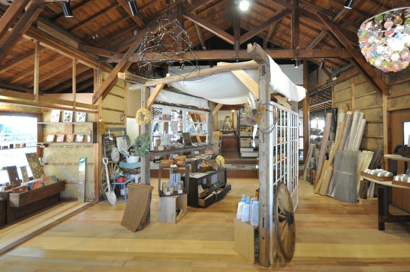 また、RE:MATERIALでは廃材のクリエイティブリユース商品も販売しています。たとえば、廃材を使った一輪挿しや壁紙で作った現代アート作品などがあります。RE:MATERIALは空き家になっていた古民家を買い取り全面改装したお店で、場所も兵庫県加古郡稲美町という田舎町ながらここから地域の新しいコミュニティの場としての活性化を想定しています。