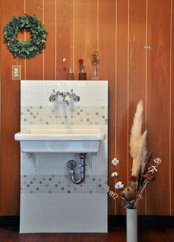 廃材タイルを洗面に使った例