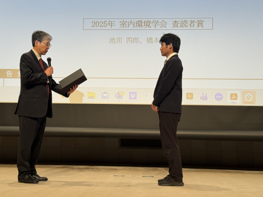 今回受賞した橋本一浩主任研究員は、住環境の微生物への研究実績と高い専門性を持つため、室内環境学会誌に掲載された他の研究者の論文審査(査読)をこれまでに数多く引き受け、その質や信頼性を保証してきました。その功績と的確で建設的なコメントや迅速な対応を行ったことが評価され、「査読者賞」を授与されました。
