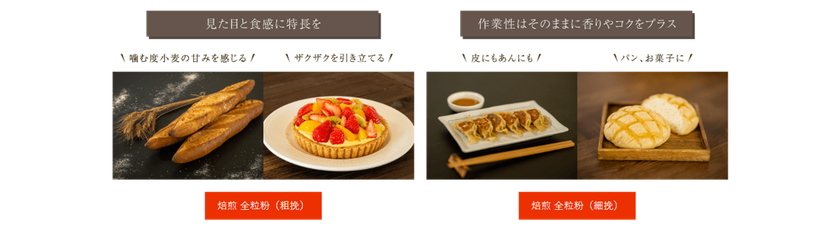 今回発売する「焙煎工房」シリーズは、原料を見極め最適化した独自焙煎技術と、長年培った製粉技術を掛け合わせたオリジナル商品です。近年、健康志向に伴い、人気上昇中の全粒粉にも“香り”という新しい価値をつけました。パンやお菓子、料理に加えることで新たなおいしさと個性を生み出します。