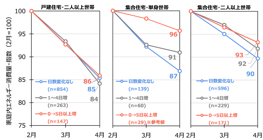 集計対象:戸建住宅および集合住宅に住む世帯のうち、1月中旬から4月中旬に在宅勤務日数が減った世帯を除いた世帯