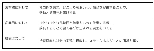 創業者の信念、理念体系を体現することで中村屋がお客さまに約束する提供価値を「中村屋の約束」に表しました。中村屋は"変わらない「おいしい」をいつもあたらしく”していくことで、皆さまと喜びを分かち合える、そんな会社であり続けます。