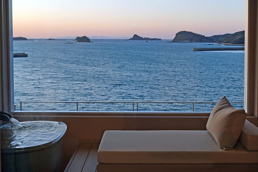 6月17日リブランドオープンする「壱岐リトリート 海里村上」全室源泉露天風呂付客室からの眺め
