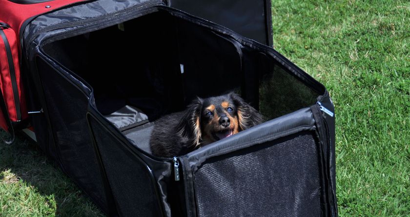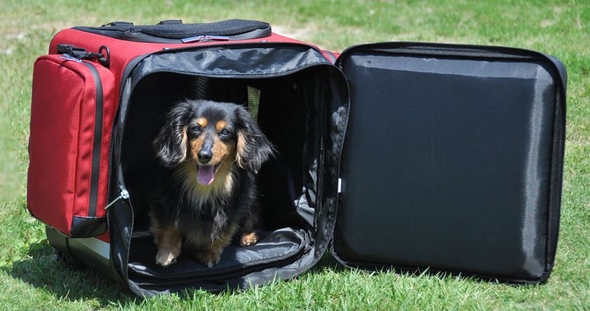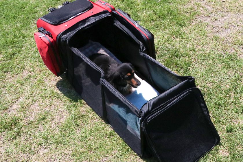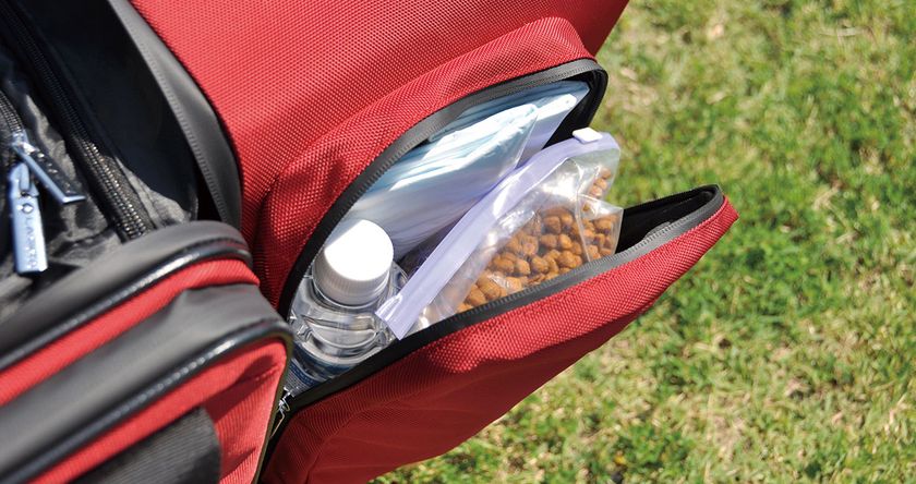 フード、ペットボトルの水、トイレ用品、首輪とリードなどを入れておくことができます。