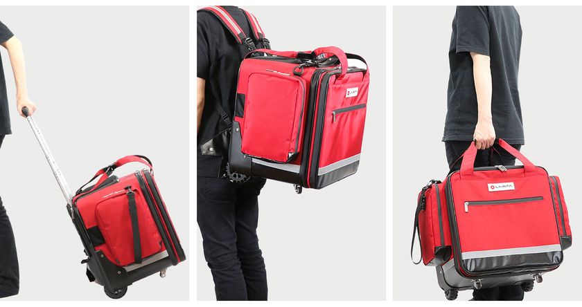転がせば楽に移動ができ、足場が悪い時には背負って、とっさの時には持って。シーンに合わせた移動が可能です。