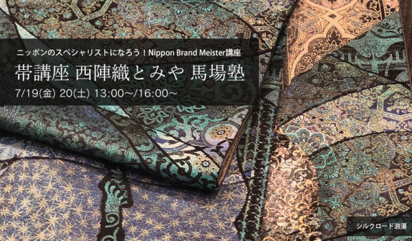 日本一の帯の産地「京都西陣」から屈指の技術を誇る「とみや織物」の工場長・馬場洋次郎氏の職人50周年を記念して、ご実物に触れ、伝統に裏打ちされた技術と創作性の高い意匠をご堪能いただきながら、きものの中での帯の役割や職人の技術についてお話いただく「馬場塾」を開催いたします。季節に合わせた新作の帯も勢揃い、タペストリーに織り上げた「阿修羅観音」は必見です。