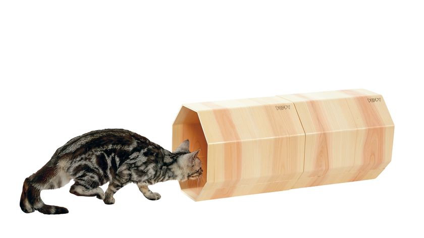 日本遺産にも認定されている技法、挽曲げ技術が光る。“吉野桧”を使用した猫専用トンネルベッドが新発売。