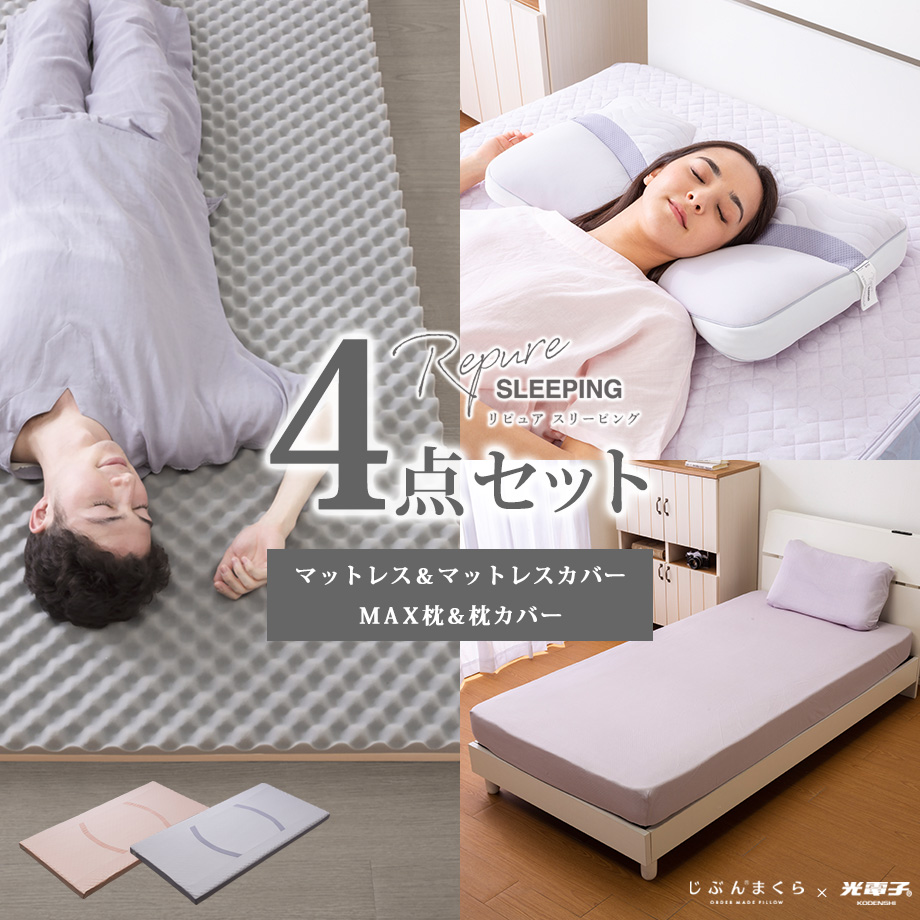 期間限定30%OFF!リピュア マットレスの布団4点セット(マットレスシングル・ストレスフリー 枕・マットレスカバー・枕カバー)