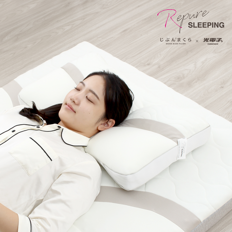 「光電子Ⓡ」と「じぶんまくら」のコラボブランド「リピュアスリーピング」は、光電子の効果で自分に合った適温で眠ることができ、睡眠時のストレスなく、自己回復力をアップできる寝具ブランドです。