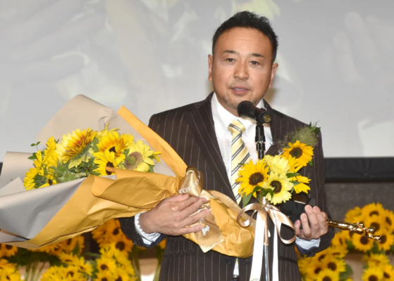 (写真:ベストファーザー賞を受賞した株式会社アルプロン代表 坂本雅俊氏のスピーチ)