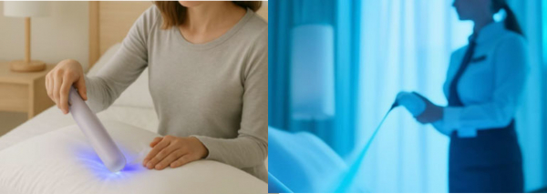 起床後、枕の表面を照射することで細菌などを低減。