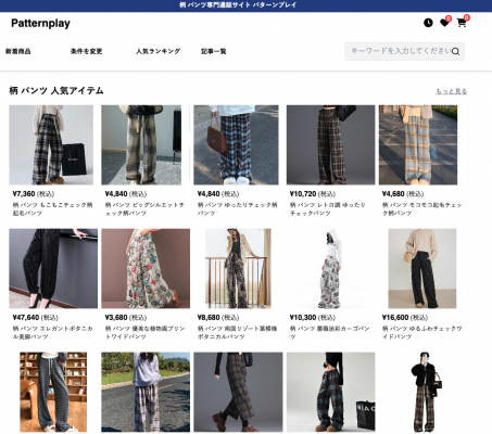 柄パンツの専門通販サイト「パターンプレイ」は、柄パンツに特化し、100商品以上のアイテムを取り揃えています。