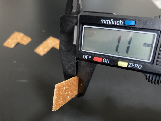 2025年3月5日時点で、焼き和菓子の最小奥行は1.1mm。