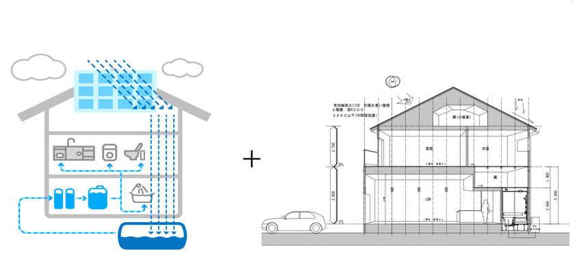 OTG100蔵は、電力会社の送電網やガス、水道などのインフラシステムから独立し、太陽光や風力といった再生可能エネルギーから電力や水を生成する住宅です。もともと欧米で生まれ、生活に取り入れられてきた考えですが、近年はソーラー発電システムのほか、水生成システムの仕組みの進歩により、日本でのOTG住宅の提供が可能になりました。この、OTGの性能に加え、収納の問題を解消できる蔵の性能を取り入れたのが今回発売される、OTG100蔵なのです。