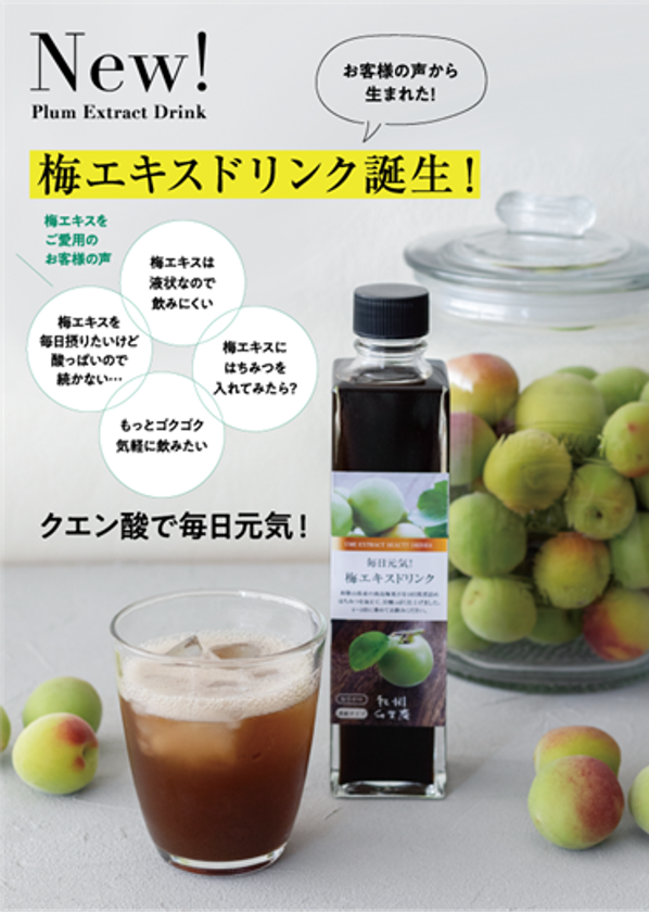 今回の梅エキスドリンク同様、お客様の声を大事に新商品づくりに励んでいきたいと思っています。