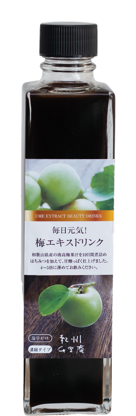 「梅エキスドリンク」のベースとなる「梅エキス」は、和歌山県産の南高青梅を100%使用し果汁だけを絞って、手仕事で10日間じっくりと時間をかけて煮詰めた健康食品です。