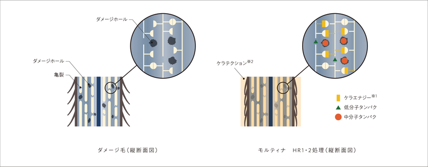 <特長成分:ケラエナジー ※1 ×ケラテクション ※2(=モルティナの活性型ケラチン)>