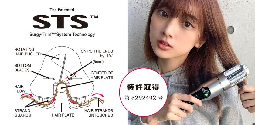 ヘアスタイルを維持しながら傷んだ枝毛の毛先、約6mmだけをカットするシャギートリムシステム(特許番号:第6292492号)を採用。スタイリストもこれはすごいとSNSで話題となっている技術です。