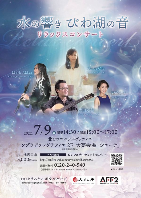 宇宙や自然をテーマに究極の癒しを奏でるHealing Music、クリスタルボウルサウンドヒーリングプロジェクトチーム「クリスタルボウルハープ」は、『水の響き びわ湖の音』リラックスコンサートを2022年7月9日(土)、北ビワコホテルグラツィエ(滋賀県長浜市)にて開催いたします。
