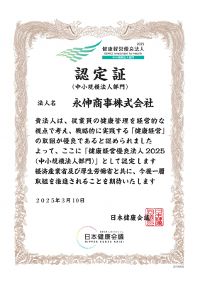 永伸商事が、経済産業省と日本健康会議から「健康経営優良法人2025」に認定されました。