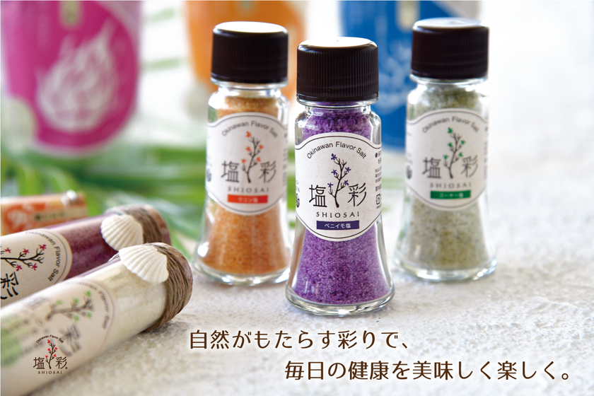 沖縄の代表的な健康素材を配合した塩彩フレーバーソルトは、日々の食事からその貴重な栄養素を手軽に摂り入れることができます。