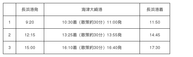 長浜港発着便 受付(長浜港) TEL:0749-62-3390(9:00~16:30)