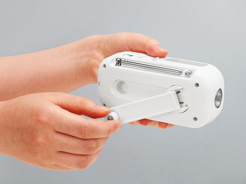 「ダイナモラジオ」(SAD-8702/W)は、平時にはラジオとしてAM/FM(ワイドFM対応)放送を聴き、災害時には、LEDライトや非常用のSOSサイレン、外部機器への給電といった緊急機能を搭載するなど、片手にすっぽり収まるコンパクトサイズながら充実した機能が備わった商品です。