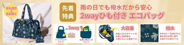 【先着特典】:先着で2wayひも付きエコバッグをご用意しています。