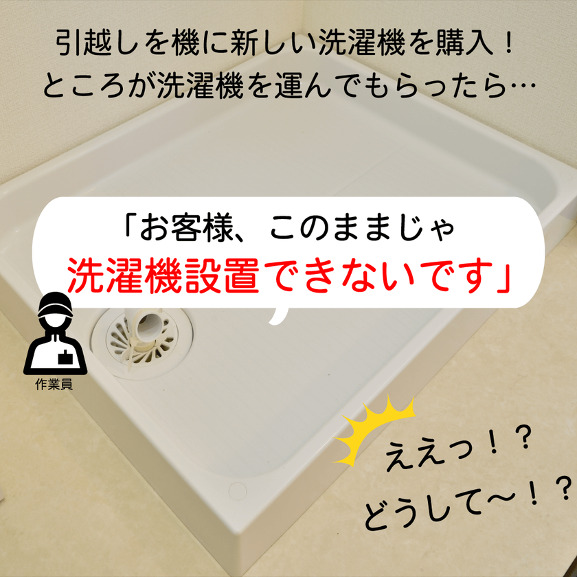 洗濯パンの形や排水口の位置で洗濯機が設置できないトラブル発生!