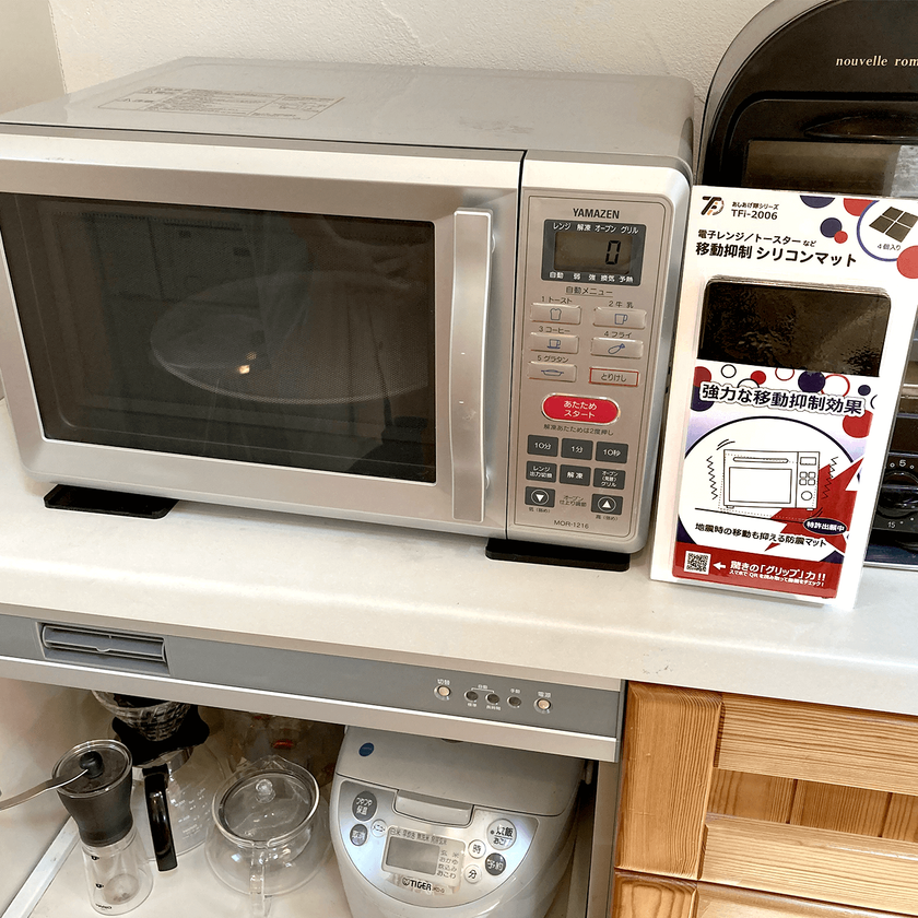 扉開閉時や地震時に電子レンジやトースターが動いてしまうことはありませんか。