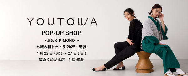 YOUTOWAは、この“日常に寄り添う和の楽しみ”というコンセプトに深く共感しています。着物だけでなく洋服とも自然に調和するデザインや、日常使いに馴染みやすく、幅広いスタイリングに対応できる着回し力のあるアイテムは、まさに『七緒』が提案する“今の自分にちょうどいい”着物の在り方と響き合います。その価値観を共有しながら、今回もポップアップショップとして参加いたします。