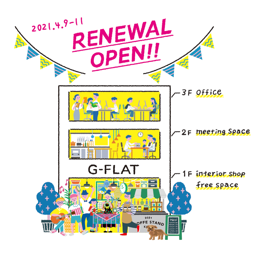 神戸・大阪を中心に中古物件のリノベーションを手掛けるG-FLAT株式会社(代表取締役:山野 大祐・鈴木 美穂)は、2021年4月9日に「G-FLAT」「直営ジーフラットインテリアショップ」を新たにビル丸ごと一棟に移転リニューアルオープンいたします。