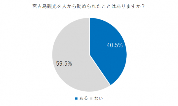 「宮古島観光を人から勧められたことはありますか?」という質問に対し、「ある」と答えた人は全体の40.5%でした。一方、「ない」と答えた人は59.5%でした。
