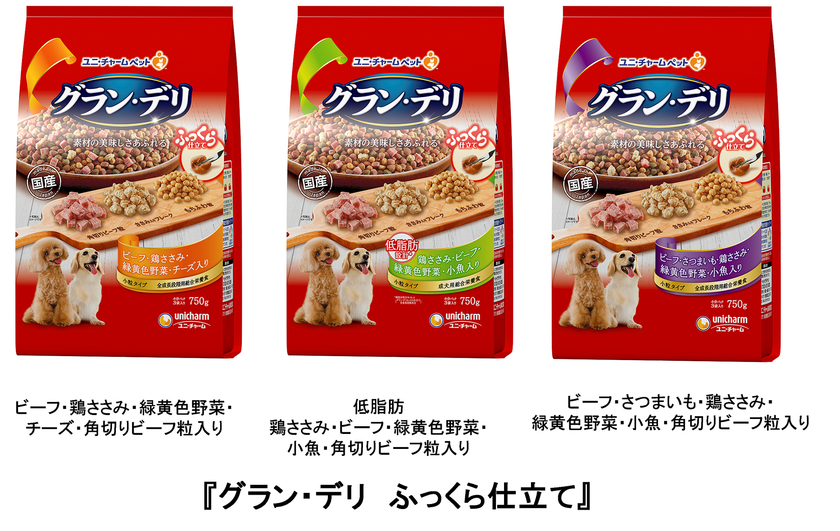 ユニ・チャーム株式会社(本社:東京都港区、代表取締役 社長執行役員:高原 豪久)は、素材の種類と量を増やして素材感を高め、さらに新フレーバーを追加した『グラン・デリ ふっくら仕立て』を2019年10月7日より全国で新発売します。