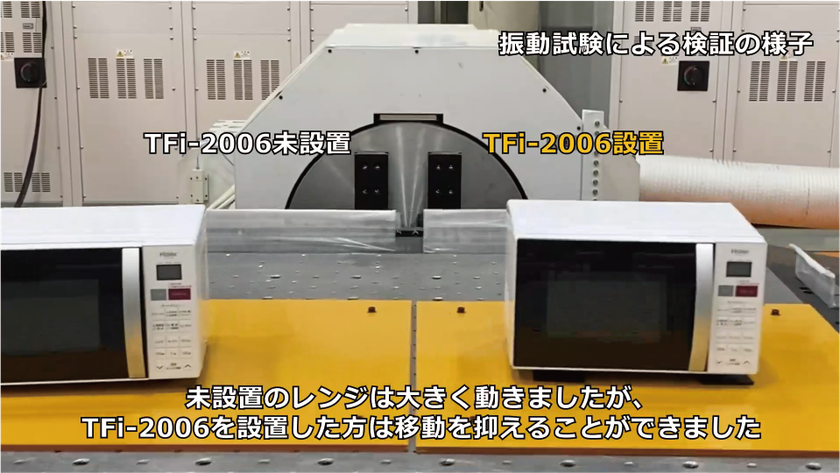 何も敷いていない電子レンジは振動と同時に大きく動きましたが、TFi-2006を敷いた電子レンジはその場に留まっている様子が分かります。