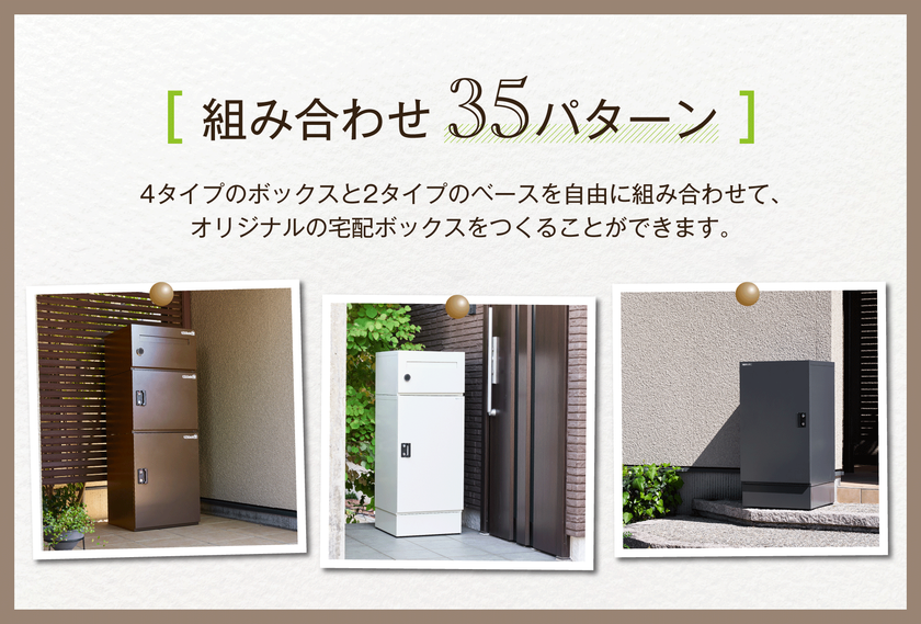 宅配KEEPER『tumiki』は、「大容量で、複数回の荷物が受け取り可能な自分だけのオリジナル宅配ボックス」をコンセプトに、お客様が3タイプのボックスとポストをご家庭のライフスタイルに合わせて組み合わせができる宅配ボックスです。