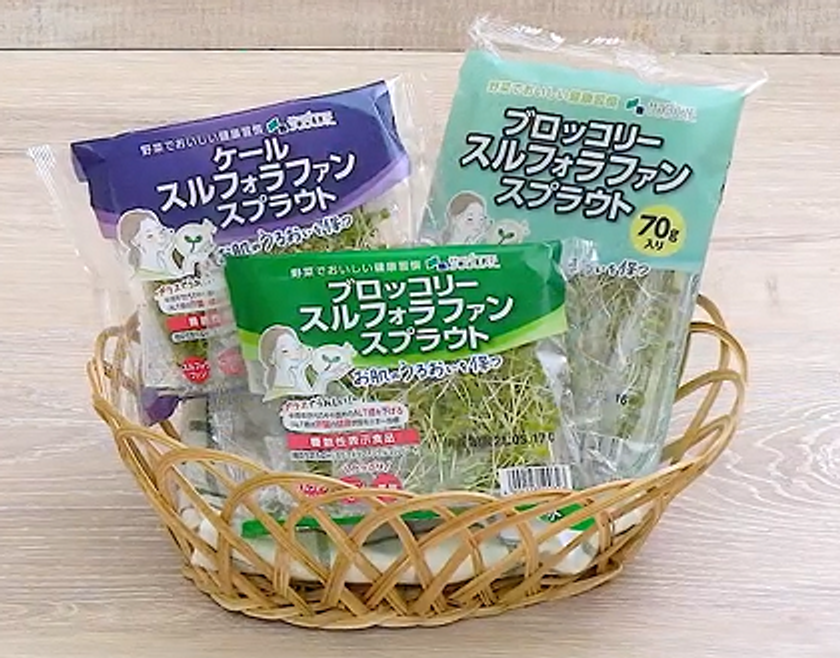今回の機能性表示に関与するのは「スルフォラファングルコシノレート」というブロッコリーなどアブラナ科の野菜に多く含まれる植物由来の成分で、特に新芽状態のスプラウトに多く含まれます。20mg/日摂取すると肌の乾燥が気になる方の肌の水分量を高める機能、24mg/日摂取すると健康な中高年世代の方の健常域でやや高めの血中肝機能酵素(ALT)値を低下させる機能が報告されています。