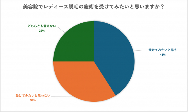 今回の調査では、美容院でレディース脱毛を受けた経験がある女性はわずか4%と少ない一方で、「受けてみたい」と興味を示した人は41%にのぼりました。